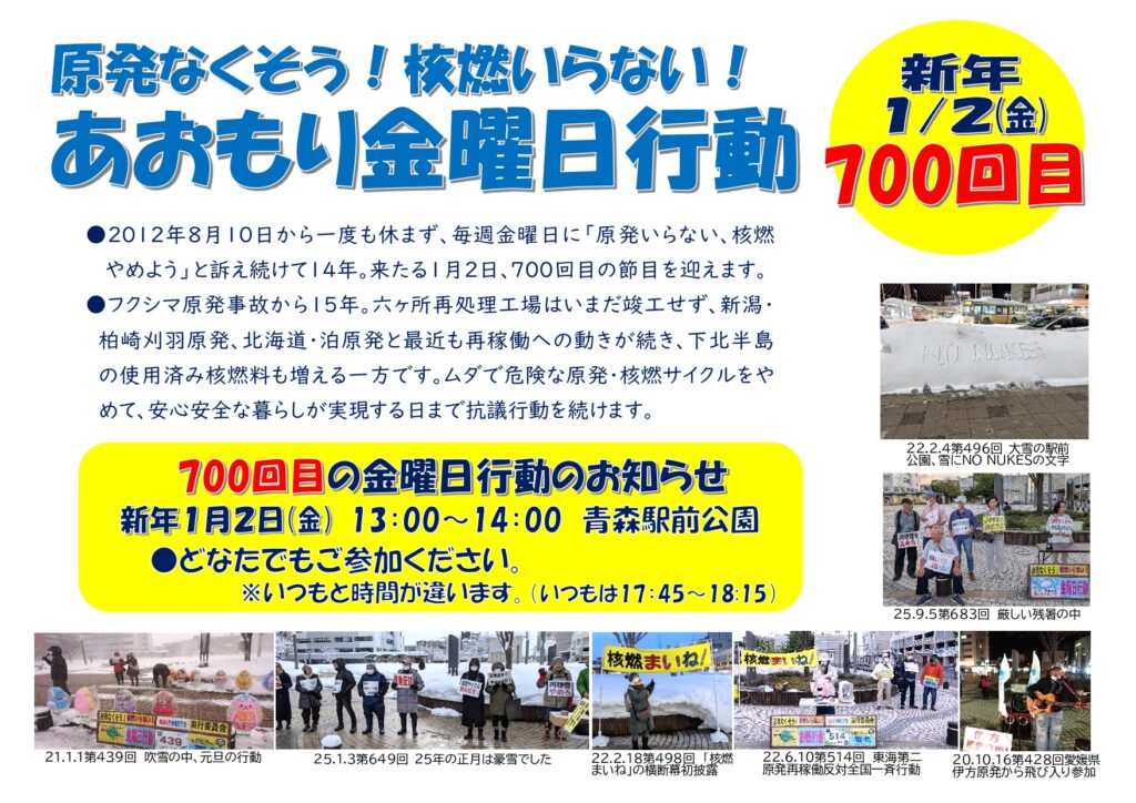 【あおもり金曜日行動 700回目】のお知らせ 拡散希望!